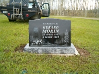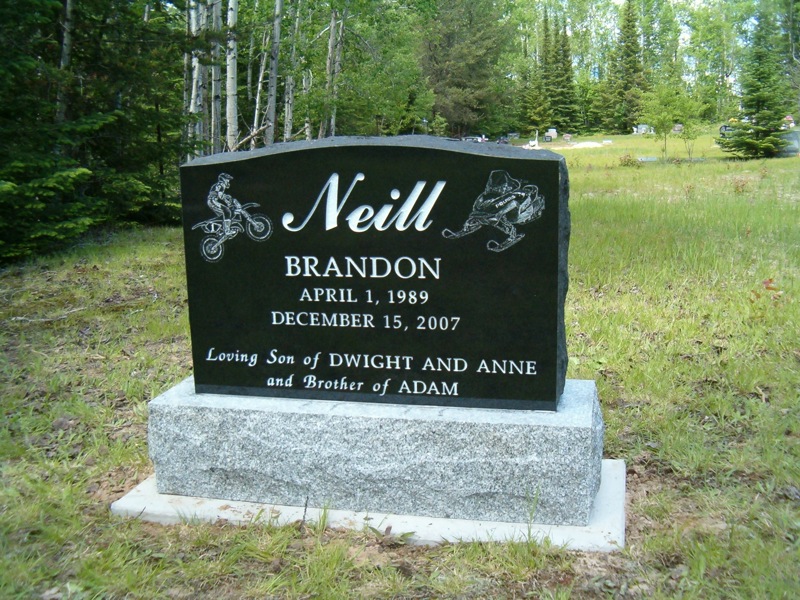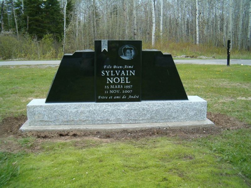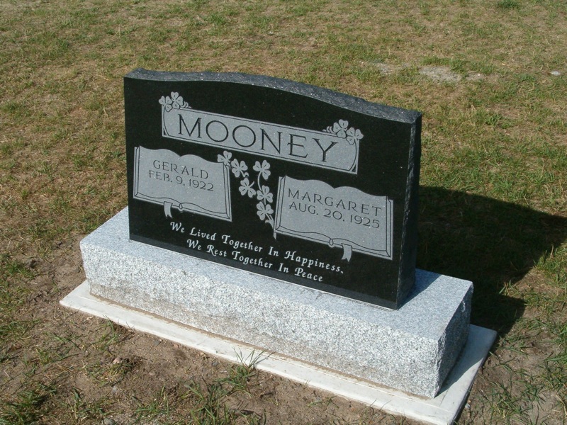 Upright monuments are available in various shapes, sizes, finishes and colours. All upright monuments are installed on a grey granite base. The back of the upright monument can also be used to inscribe the family name, add an image or a message. We carry a selection of upright monuments in-stock and we also offer custom-shapes via special order.